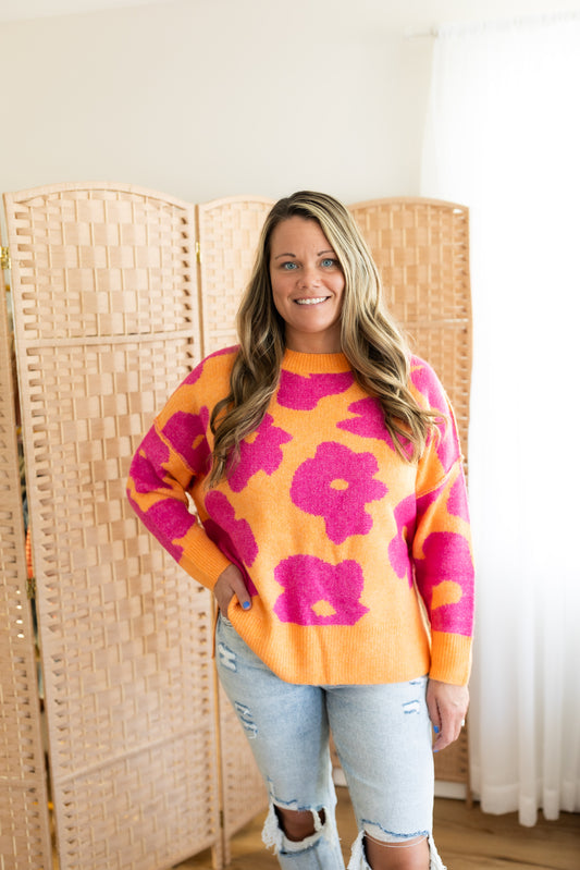 Floral Long Sleeve Loose Fit Knit Sweater