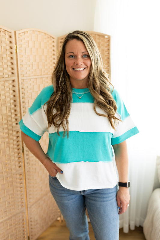 Corded Rib Short Sleeve Top – Ocean Blue & Violet