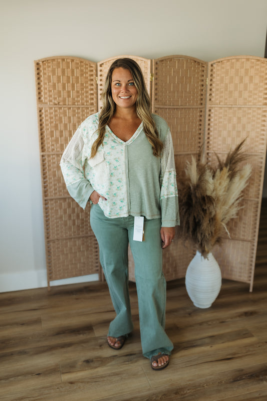 Whimsy Breeze Mint Crochet Patchwork Jacket