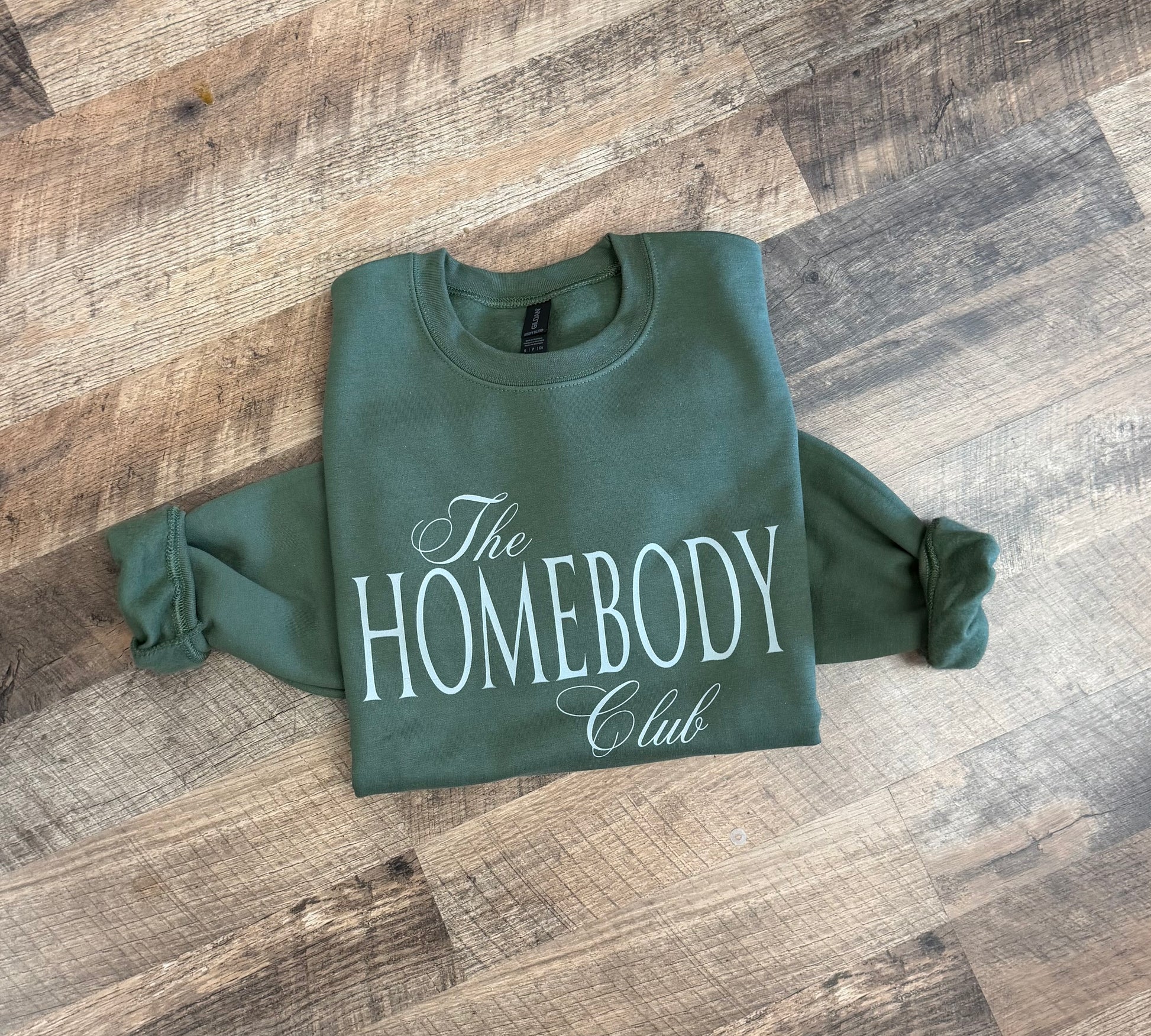 Slip into ultimate comfort with our Homebody Club Gildan Crewneck Sweatshirt – the perfect blend of cozy, classic, and everyday wearable. This sage green fleece crew features a soft interior, relaxed unisex fit, and clean ivory graphic that gives effortless boutique vibes. Whether you’re lounging at home, running errands, or styling it with leggings and boots, this crew is your go-to for comfy season.