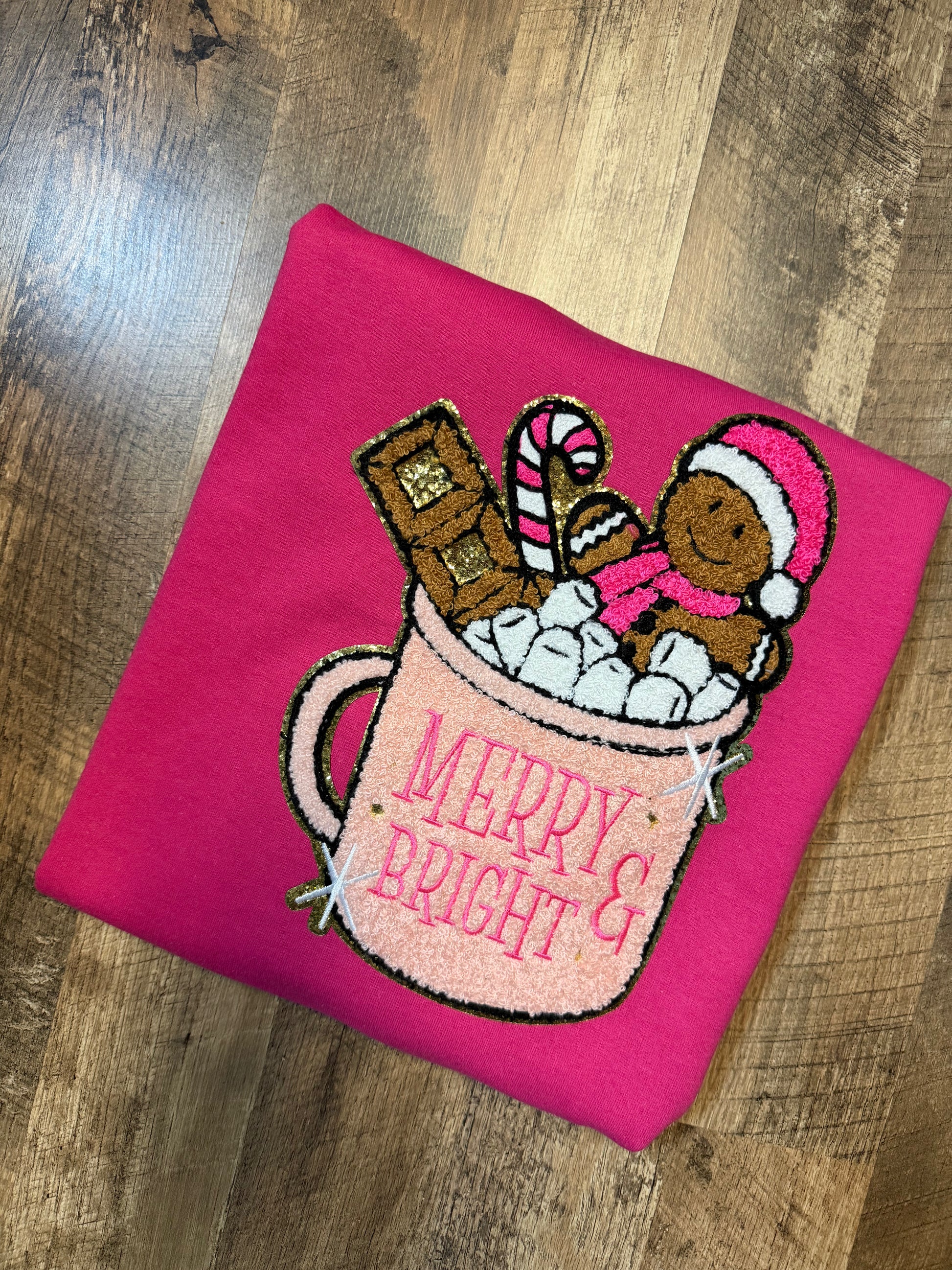 Merry & Bright Gingerbread Hot Cocoa Sweatshirt – Pink Chenille Christmas Pullover