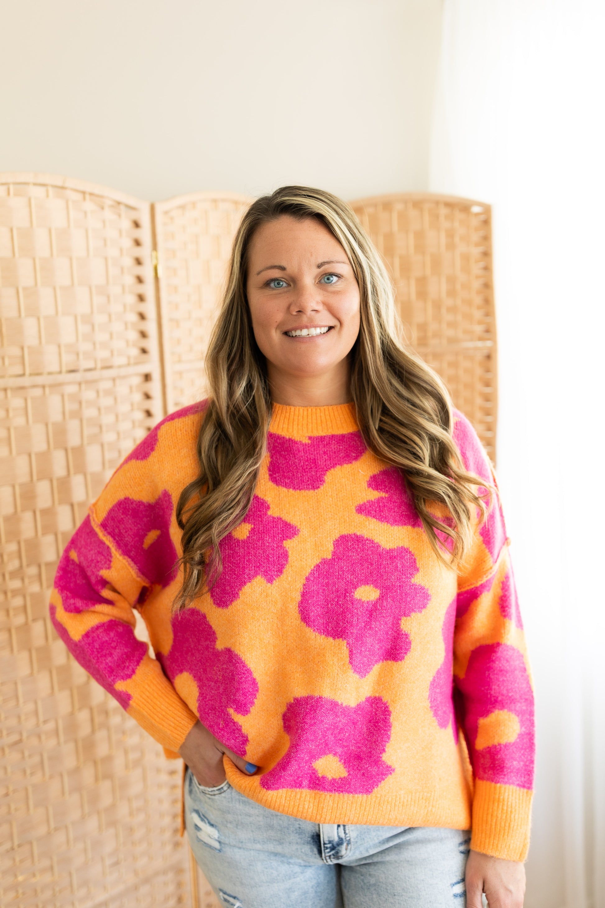 Stay cozy in this floral long sleeve loose-fit knit pullover sweater. Soft, relaxed, and effortlessly stylish — perfect for everyday wear, layering, and seasonal transitions.