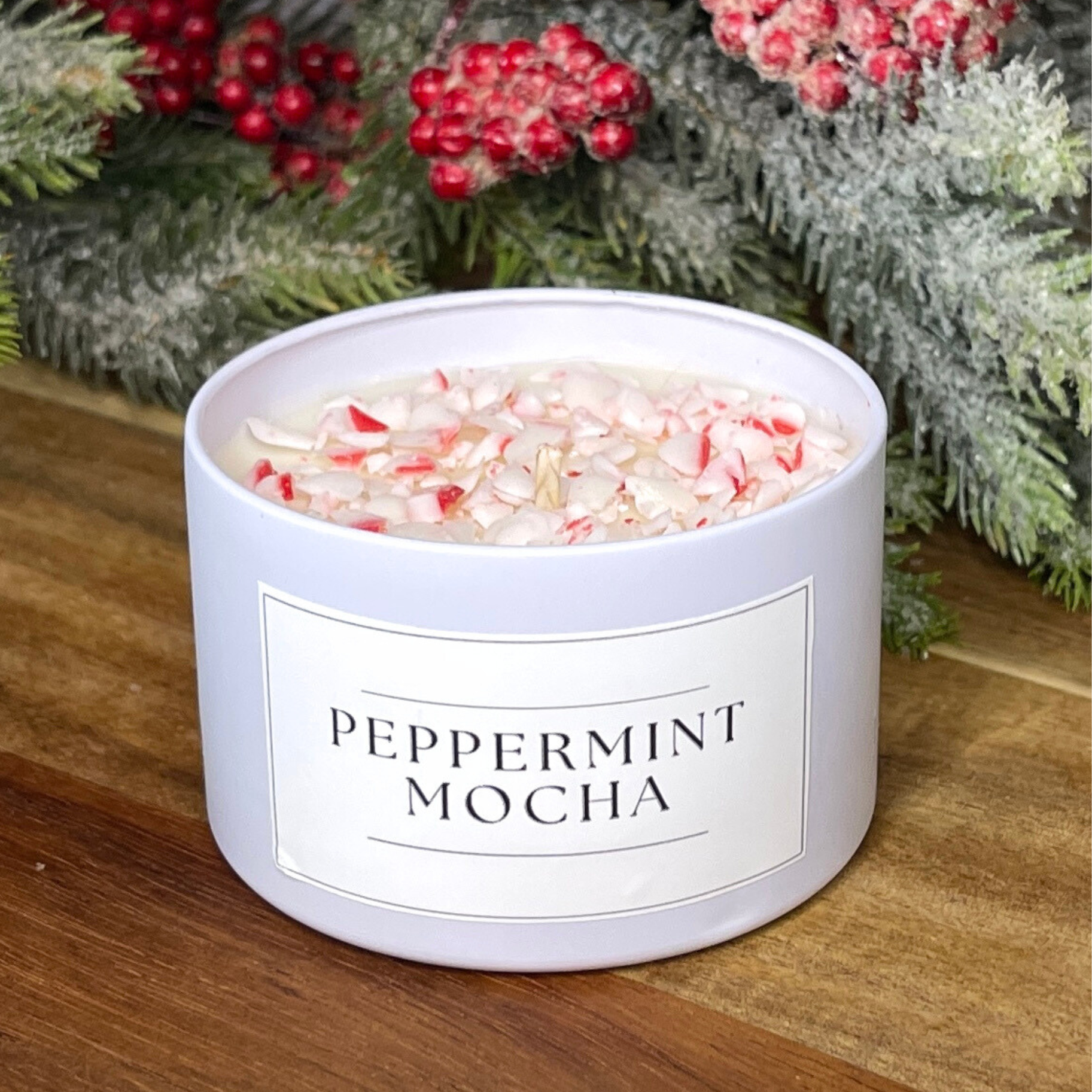 Peppermint Mocha - 8oz Matte White Jar Soy Wax Candle
